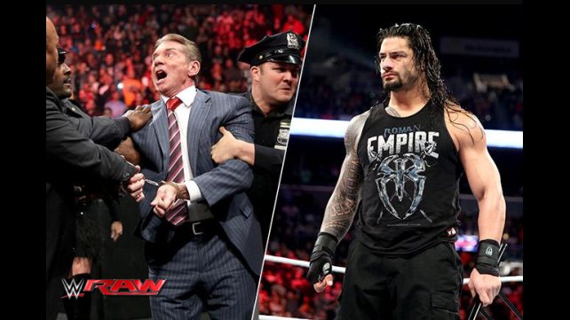 مستر ماكمان يعود من جديد بعد خروجه من حجز الشرطة ليعلن عن نزال بين رومان رينز و شيموس على اللقب في الاسبوع المقبل و الحكم الخاص سيكون مستر ماكمان نفسه !