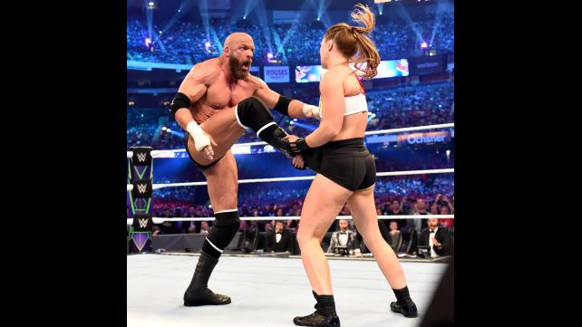 كان الظهور الأول للنجمة روندا راوزي رائعا بكل المقاييس حيث لم تنجح فقط في الفوز بالنزال و معها كيرت أنجل و لكنها نجحت في ابهار الجميع بقوتها و قدراتها المذهلة. راوزي نجحت في تحطيم كل من تريبل اتش و ستيفاني ماكمان سويا قبل أن تحطم ستيفاني و تجعلها تستسلم سريعا في النهاية.