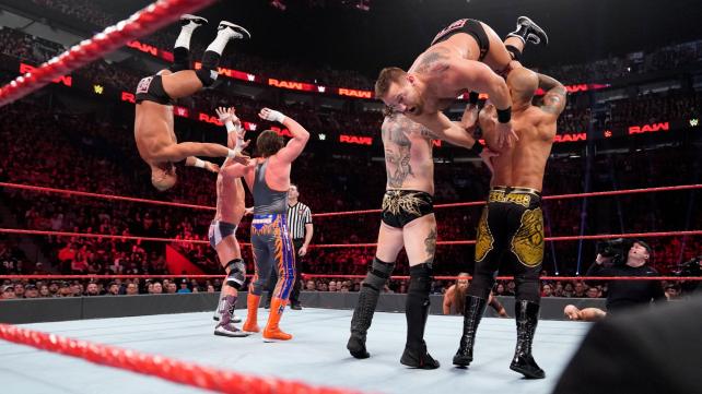 لقطات راو - أبطال NXT للزوجي ذا فايكنج أكسبيرنس و ذا ريفايفل يهزمان كيرت هوكينز و زاك رايدر و أليستر بلاك و ريكوشيه