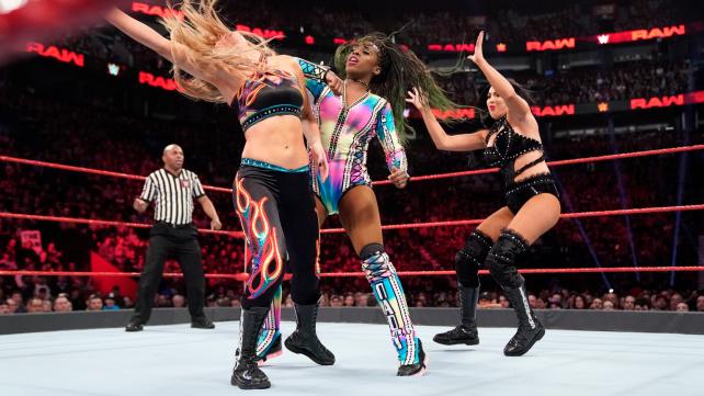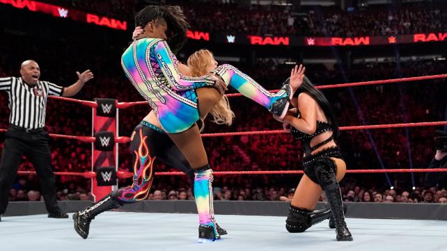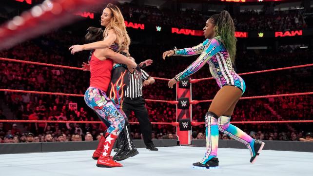 لقطات راو - بايلي و ناعومي تهزمان أبطال الزوجي للسيدات ذا أيكونكس