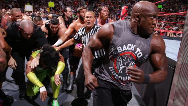 لقطات راو - رومان رينز و بوبي لاشلي يدخلان في معركة قوية