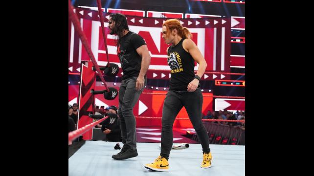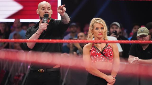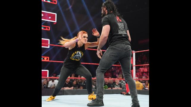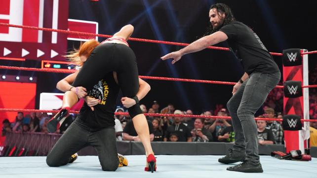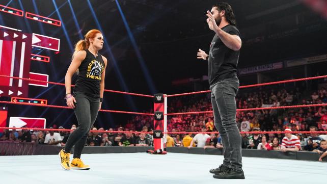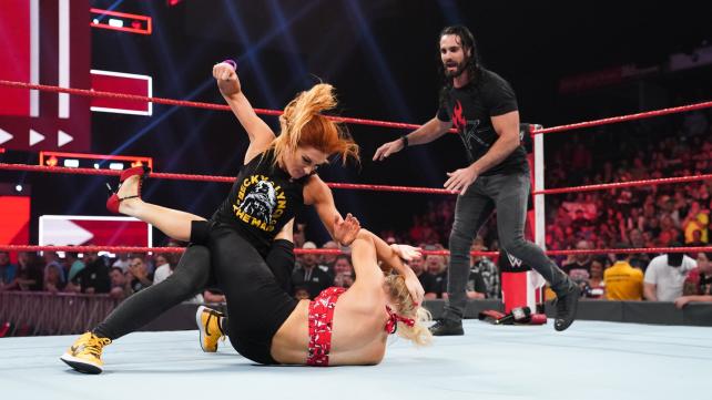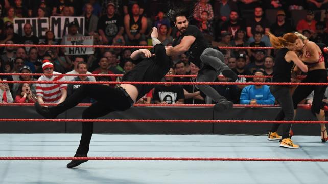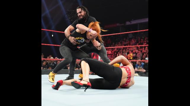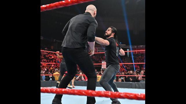 لقطات راو - سيث رولينز و بيكي لينش و بارون كوربن و لايسي ايفانز وجها لوجه