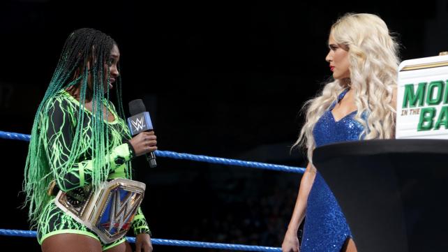 لقطات سماكداون - لانا تظهر أخيرا و حقيبة خاصة لموني ان ذا بنك للسيدات