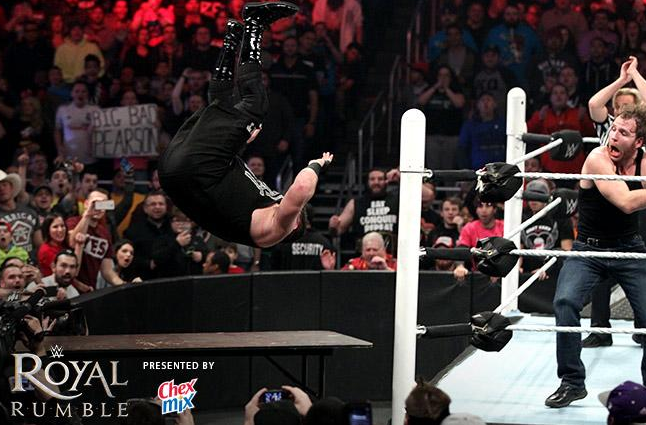 و بعد أن حاول كيفن أوينز كل الطرق في ابقاء خصمه أرضا بدأ باخراج طاولة من أسفل الحلبة و لكنه لم يكتفي بذلك و قام باخراج واحدة اخرى و حاول القاء أمبروز عليها و لكن بطل الانتركونتننتال كان له بالمرصاد و نجح في الخروج من المأزق.