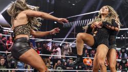 ريا ريبلي وإيو سكاي يشتبكان مع بطلتيّ الفرق أسكا وكايري سين