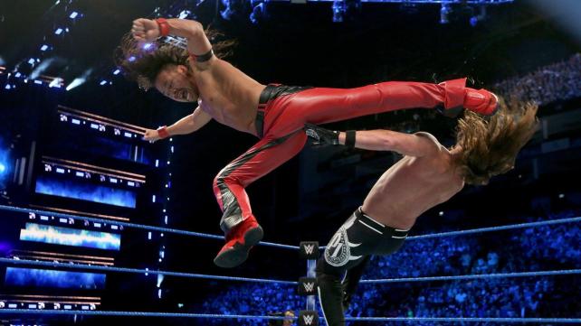 شنسكي ناكامورا يفوز على أي جاي ستايلز و بهذا يختار ناكامورا شرط نزاله مع ستايلز على اللقب في موني ان ذا بنك
