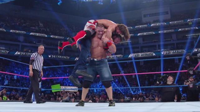 في مفاجأة غير متوقعة كان النزال الأول في عرض نو ميرسي هو النزال الرئيسي على عكس العادة والذي أقيم بين جون سينا ودين أمبروز واي جي ستايلز على بطولة WWE.